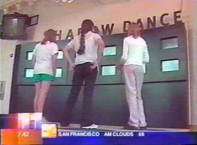 Science Center visitors play in "Shadow Dance", an Interactive Eclipse Exhibit created by Viper Vertex for Chabot Space and Science Center, videotaped by "Tech Talk" on KNTV News channel 11 and KBWB channel 20.
