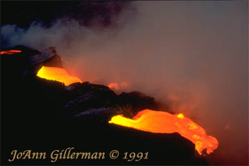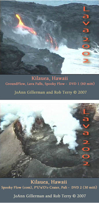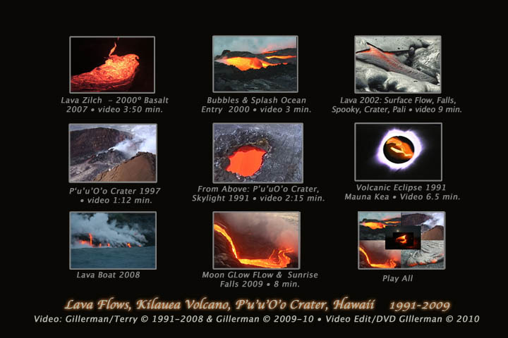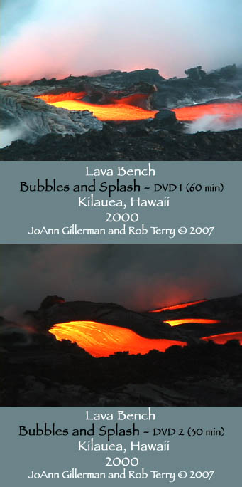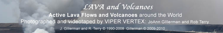 These Photographs and Video/DVD, produced by JoAnn Gillerman and Rob Terry (© Viper Vertex) have been shot on location of active lava flows on the Volcano Kilauea in Hawaii from 1991-2008. Viper Vertex has an extensive archive of lava imagery from this volcano and others around the world. Works include many photographic images digital and 35 mm, over 20 hours of video and DVD, interactive DVD, sculpture, interactive installations and exhibits. |